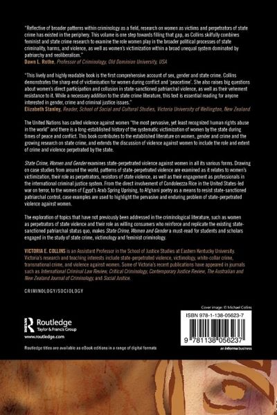 "Victoria Collins' book, State Crime, Women and Gender, makes a much needed and long overdue contribution to the study of state crime.... Accessible to students and scholars alike, (it) provides an essential introduction to the complex and multifaceted relationship between state criminality and gender. Laying a solid foundation for future research, Collins' work is a necessary first step towards forging a more integrated understanding of women and gender within the field of state crime." - -Elizabeth A. Bradshaw, Central Michigan University, Critical Criminology