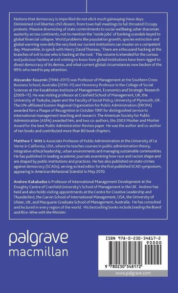List of Figures List of Tables Acknowledgements List of Contributors Introduction; M.T.Witt & A.P.Kakabadse State Crimes Against Democracy: A Clarification of Connotations; J.Dixon , S.Spehr & J.Burke Normalizing the SCAD Heuristic; C.Hinson From a Fabric of Suspicion: The U.S. Constitution and Other Founding Dilemmas; L.deHaven-Smith Auditing Moral Hazards for the Post-Global Financial Crisis (GFC) Leadership; A.Kakabadse , A.Kouzmin , N.K.Kakabadse & N.Mouraviev Ideal Typing (in)visible Power in the Context of Oligarchic Isomorphisms; A.Kouzmin The Social Construction of Race, Inequality and the Invisible Role of the State; C.Jensen Unlimited & Unchecked Power: The Use of Secret Evidence Law; M.G.Alkadry American Military-Education Convergence: Designing the Failure of Public Education; R.Simnjanovski Privatising Vulnerability: The Downside to Shareholder-Value Maximization; N.K.Kakabadse & A.Kakabadse The Determination of Behavioural Patterns in Tourism Destinations through Terrorism: Lessons from Crete, Greece; N.V.Pappas Cultural Narratives, Early Occupy Movement, and the TEA Party: Are revolts against E-SCAD and SCAD; D.S Kuku-Siemons , J.Johannesson & H.Siemons SCAD Alert: Occupy Wall Street is to Capitalism what Labor Unions were to Communism - a Systemic Contradiction that can be neither Swallowed nor Spit Out; M.Witt Index