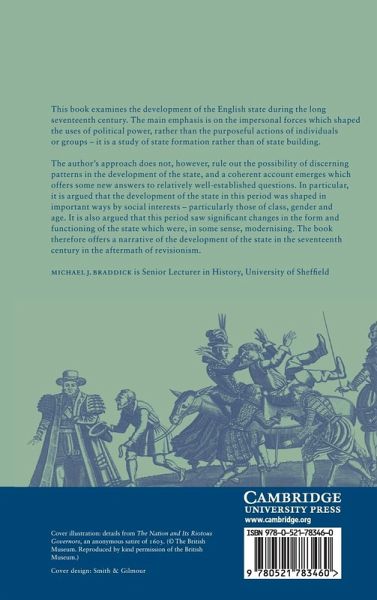 This book examines the development of the English state during the long seventeenth century, emphasising the impersonal forces which shape the uses of political power, rather than the purposeful actions of individuals or groups. It is a study of state formation rather than of state building. The author's approach does not however rule out the possibility of discerning patterns in the development of the state, and a coherent account emerges which offers some alternative answers to relatively well-established questions. In particular, it is argued that the development of the state in this period was shaped in important ways by social interests - particularly those of class, gender and age. It is also argued that this period saw significant changes in the form and functioning of the state which were, in some sense, modernising. The book therefore offers a narrative of the development of the state in the aftermath of revisionism.