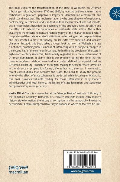 This book explores the transformation of the state in Wallachia, an Ottoman tributary principality, between 1740 and 1800, by focusing on three administrative techniques: regulations, paperwork (registers, identification certificates), and weights and measures. The implementation by the central power of regulations, bookkeeping, certificates, and standard units of measurement was not smooth, but it nevertheless heralded the beginning of the struggle against localism and the efforts to extend the boundaries of legitimate state action. The author challenges the (mostly Romanian) historiography of the Phanariot period, which has portrayed the state as a set of institutions undertaking certain responsibilities and has insisted almost exclusively on its extractive function and abusive character. Instead, this book takes a closer look at how the Wallachian state functioned, examining how its means of interacting with its subjects changed in the second half of the eighteenth century. Rethinking the problem of the state in eighteenth-century Wallachia, traditionally regarded as a mere instrument of Ottoman domination, it claims that it was precisely during this time that the bases of modern statehood were laid in a context defined by imperial rivalries (Ottoman, Habsburg, Russian) in the region. Making the case for state formation in the absence of preparation for war, the author also stresses, in contrast to recent contributions that decentre the state, the need to study the process whereby the effect of state coherence is produced. While focusing on Wallachia, this book provides valuable reading for those interested in early modern administrative and legal history, the history of state formation, and Southeast European history more generally.