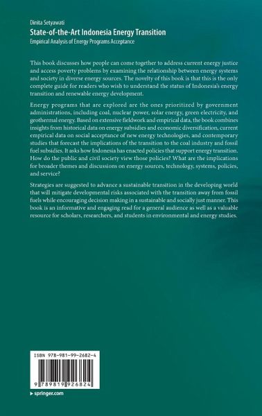 This book discusses how people can come together to address current energy justice and access poverty problems by examining the relationship between energy systems and society in diverse energy sources. The novelty of this book is that this is the only complete guide for readers who wish to understand the status of Indonesia's energy transition and renewable energy development.