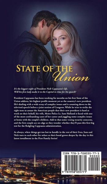 It's the biggest night of President Nick Cappuano's life. Will his first lady make it to the Capitol in time for his speech? President Cappuano has been working for months on his first State of the Union address his highest profile moment yet as the country's new president. He's dealing with a wide array of complex issues and is counting down to the televised speech before a joint session of Congress. While he tries to strike the right tone to assure the American people that their new president is hard at work on their behalf his wife Metro Police Lt. Sam Holland is faced with one of the most confounding cases of her career and juggling some complex issues at home with the couple's children. Add to that some vexing security concerns and the first couple are on edge as they wonder whether they'll pass this first big test for the fledgling Cappuano administration. As always when things get too hot to handle in the rest of their lives Sam and Nick turn to each other for solace as their bond grows deeper by the day in this latest installment in the First Family Series!