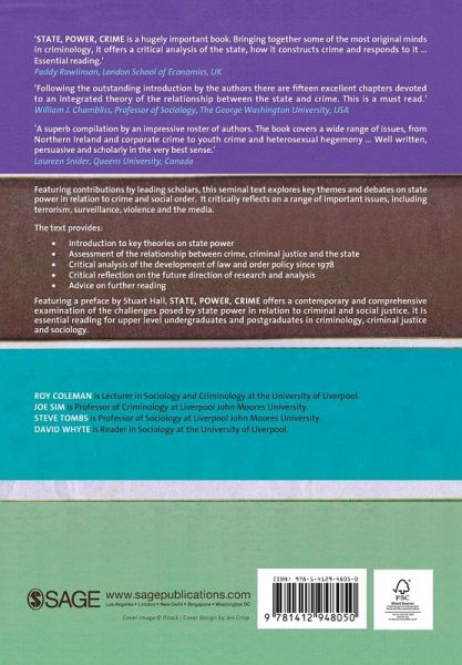 Preface - Stuart Hall Introduction: State, Power, Crime - Roy Coleman et al Gender, Power and the State: Same as It Ever Was? - Anette Ballinger The Heterostate: Hegemonic Heterosexuality and State Power - Lois Bibbings Racism and the State: Authoritarianism and Coercion - Jon Burnett Policing the Working Class in the City of Renewal: The State and Social Surveillance - Roy Coleman Young People, Youth Justice and the State - Janet Jamieson and Joe Yates Power, Politics and the Welfare State - Chris Jones and Tony Novak The State and Corporate Crime - Steve Tombs and David Whyte Violence and the State - Penny Green and Tony Ward The