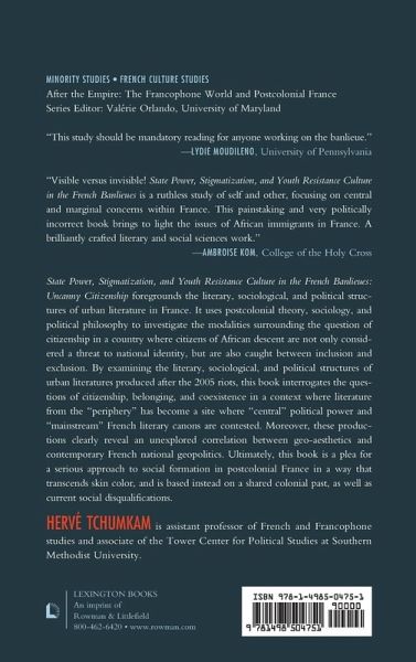 State Power, Stigmatization, and Youth Resistance Culture in the French Banlieues: Uncanny Citizenship studies the invisibility of visible minorities in a space relegated to the periphery of major French cities.