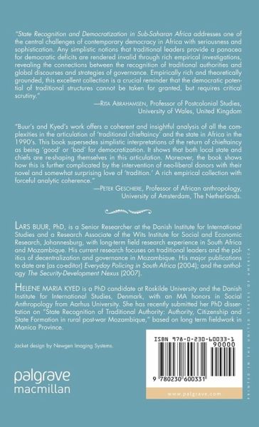 "State Recognition and Democratization in Sub-Saharan Africa addresses one of the central challenges of contemporary democracy in Africa with seriousness and sophistication. Any simplistic notions that traditional leaders provide a panacea for democratic deficits are rendered invalid through rich empirical investigations, revealing the connections between the recognition of traditional authorities and global discourses and strategies of governance. Empirically rich and theoretically grounded, this excellent collection is a crucial reminder that the democratic potential of traditional structures cannot be taken for granted, but requires critical scrutiny." - Rita Abrahamsen, Professor of Postcolonial Studies, University of Wales, United Kingdom
