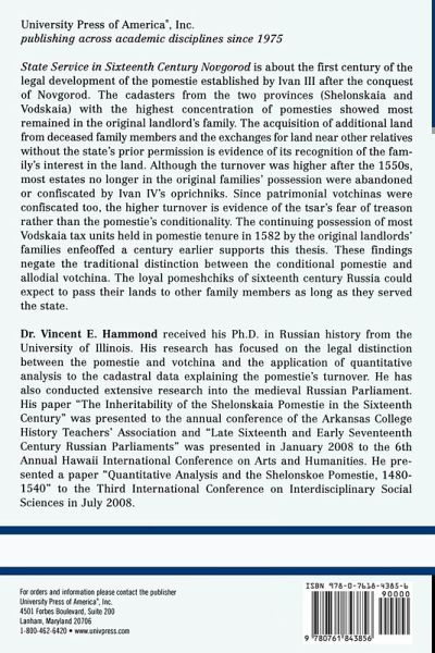 State Service in Sixteenth Century Novgorod is about the first century of the legal development of the pomestie established by Ivan III after the conquest of Novgorod.