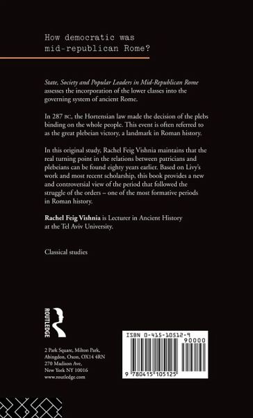 State, Society, and Popular Leaders profiles the incorporation of the lower classes into the governing system of ancient Rome. In 287, the Hortensian law made the decisions of the plebs binding on the whole people. This event is often referred to as the great plebeian victory, a landmark in Roman history. In this original study, Rachel Feig Vishnia maintains that the real turning point in the relations between the plebs and the patricians can be found eighty years earlier. Based on the works of Livy and most recent scholarships, this book provides a new and controversial view of one of the most exciting periods in Roman history.