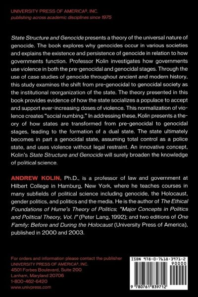 State Structure and Genocide presents a theory of the universal nature of genocide. The book explores why genocides occur in various societies and explains the existence and persistence of genocide in relation to how governments function.