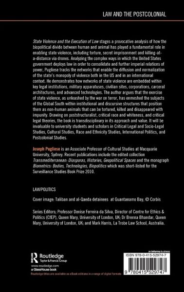 State Violence and the Execution of Law stages a provocative analysis of how the biopolitical divide between human and animal has played a fundamental role in enabling state violence, including torture, secret imprisonment and killing-at-a-distance via drones. Analyzing the complex ways in which the United States government deploys law in order to consolidate and further imperial relations of power, Pugliese tracks the networks that enable the diffusion and normalization of the state's monopoly of violence both in the US and in an international context. He demonstrates how networks of state violence are embedded within key legal institutions, military apparatuses, civilian sites, corporations, carceral architectures, and advanced technologies. The author argues that the exercise of state violence, as unleashed by the war on terror, has enmeshed the subjects of the Global South within institutional and discursive structures that position them as non-human animals that can be tortured, killed and disappeared with impunity. Drawing on poststructuralist, critical race and whiteness, and critical legal theories, the book is transdisciplinary in its approach and value. It will be invaluable to university students and scholars in Critical Legal and Socio-Legal Studies, Cultural Studies, Race and Ethnicity Studies, International Politics, and Postcolonial Studies.