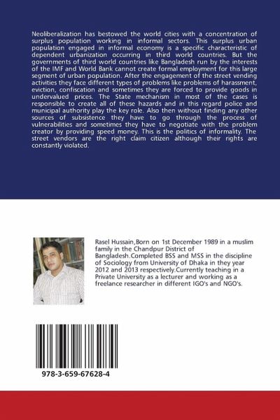 Neoliberalization has bestowed the world cities with a concentration of surplus population working in informal sectors. This surplus urban population engaged in informal economy is a specific characteristic of dependent urbanization occurring in third world countries. But the governments of third world countries like Bangladesh run by the interests of the IMF and World Bank cannot create formal employment for this large segment of urban population. After the engagement of the street vending activities they face different types of problems like problems of harassment, eviction, confiscation and sometimes they are forced to provide goods in undervalued prices. The State mechanism in most of the cases is responsible to create all of these hazards and in this regard police and municipal authority play the key role. Also then without finding any other sources of subsistence they have to go through the process of vulnerabilities and sometimes they have to negotiate with the problem creator by providing speed money. This is the politics of informality. The street vendors are the right claim citizen although their rights are constantly violated.