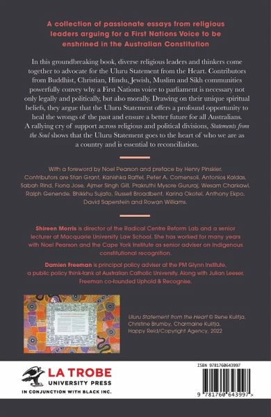 A collection of passionate essays from religious leaders arguing for a First Nations Voice to be enshrined in the Australian Constitution In this ground-breaking collection of essays, diverse religious leaders and thinkers come together to advocate for the Uluru Statement from the Heart. Contributors from Buddhist, Christian, Hindu, Jewish, Muslim and Sikh communities powerfully convey why a First Nations voice to parliament is necessary not only legally and politically, but also morally. Drawing on their unique spiritual beliefs, they argue that the Uluru Statement offers a profound opportunity to heal the wrongs of the past and ensure a better future for all Australians. A rallying cry of support across religious and political divisions, Statements from the Soul shows that the Uluru Statement goes to the heart of who we are as a country and is essential to reconciliation. With a foreword by Noel Pearson and preface by Henry Pinskier. Contributors are Sabah Rind, Wesam Charkawi, Fiona Jose, Sardar Ajmer Singh Gill, Prakruthi Mysore Gururaj, Bhikkhu Sujato, Stan Grant, Antonios Kaldas, Ralph Genende, Russell Broadbent, Karina Okotel, Kanishka Raffel, Peter Comensoli, Anthony Ekpo, David Saperstein and Rowan Williams.