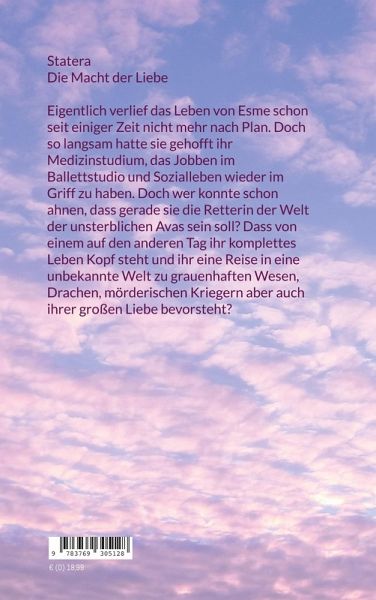 Statera Die Macht der Liebe Eigentlich verlief das Leben von Esme schon seit einiger Zeit nicht mehr nach Plan. Doch so langsam hatte sie gehofft ihr Medizinstudium, das Jobben im Ballettstudio und Sozialleben wieder im Griff zu haben. Doch wer konnte schon ahnen, dass gerade sie die Retterin der Welt der unsterblichen Avas sein soll? Dass von einem auf den anderen Tag ihr komplettes Leben Kopf steht und ihr eine Reise in eine unbekannte Welt zu grauenhaften Wesen, Drachen, mörderischen Kriegern aber auch ihrer großen Liebe bevorsteht?