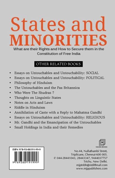 Soon after it became definite that the framing of the future Constitution of India was to be entrusted to a Constituent Assembly, the Working Committee of the All-India Scheduled Castes Federation asked me to prepare a Memorandum on the Safeguards for the Scheduled Castes for being submitted to the Constituent Assembly on behalf of the Federation. I very gladly undertook the task. The results of my labour are contained in this brochure.The Memorandum defines Fundamental Rights; Minority Rights and Safeguards for the Scheduled Castes. Those who hold the view that the Scheduled Castes are not a minority might say that. in this matter I have gone beyond prescribed bounds. The view that the Scheduled Castes are not a minority is a new dispensation issued on behalf of the High and Mighty Hindu Majority which the Scheduled Castes are asked to submit to. The spokesmen of the Majority have not cared to define its scope and its meaning. Anyone with a fresh and free mind, reading it as a general proposition, would be justified in saying that it is capable of double interpretation. I interpret it to mean that the Scheduled Castes are more than a minority and that any protection given to the citizens and to the minorities will not be adequate for the Scheduled Castes. In other words it means that their social, economic and educational condition is so much worse than that of the citizens and other minorities that in addition to protection they would get as citizens and as minorities the Scheduled Castes would require special safeguards against the tyranny and discrimination of the majority. The other interpretation. is that the Scheduled Castes differ from a minority and therefore they are not entitled to the protection which can be claimed by a minority. This interpretation appears to be such unmitigated nonsense that no sane man need pay any attention to it. The Scheduled Castes must be excused if they ignore it. Those who accept my interpretation of the view that the Scheduled Castes are not a minority will, I am sure, agree with me that I am justified in demanding for the Scheduled Castes, all the benefit of the Fundamental Rights of citizens, all the benefit of the Provisions for the Protection of the minorities and in addition special Safeguards.