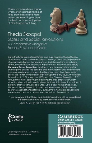Theda Skocpol shows how state structures, international forces, and class relations combine to explain the origins and accomplishments of social-revolutionary transformations. Believing that existing theories of revolution, both Marxist and non-Marxist, are inadequate to explain the actual historical patterns of revolutions, Skocpol urges the reader to adopt fresh perspectives.