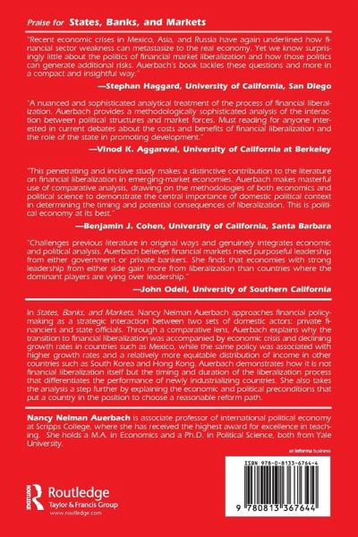 "In States, Banks, and Markets Nancy Neiman Auerbach approaches financial policymaking as a strategic interaction between two sets of domestic actors: private financiers and state officials. Through a"