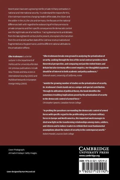 Elke Krahmann examines the changing roles of the state, the citizen and the soldier. She focuses on national differences with regard to the outsourcing of military services to private companies, and the specific consequences of these differences for the democratic control over the legitimate use of armed force.