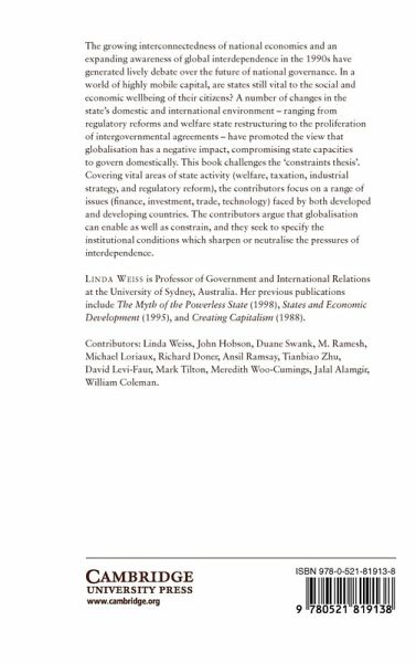 The growing interconnectedness of national economies and an expanding awareness of global interdependence in the 1990s have generated lively debate over the future of national governance. In a world of mobile capital, are states vital to the social and economic wellbeing of their citizens? A number of changes in the state's domestic and international environment - ranging from regulatory reforms and welfare state restructuring to the proliferation of intergovernmental agreements - have promoted the view that globalisation has a negative impact, compromising state capacities to govern domestically. This book challenges the 'constraints thesis'. Covering vital areas of state activity (welfare, taxation, industrial strategy, and regulatory reform), the contributors focus on a range of issues (finance, trade, technology) faced by both developed and developing countries. The contributors argue that globalisation can enable as well as constrain, and they seek to specify the institutional conditions which sharpen or neutralise the pressures of interdependence.