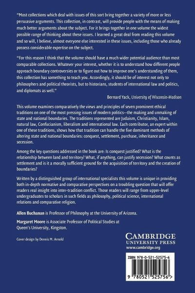 This volume examines comparatively the views and principles of seven prominent ethical traditions on the issue of the making and unmaking of state and national boundaries. The traditions represented are Judaism, Christianity, Islam, natural law, Confucianism, liberalism and international law.