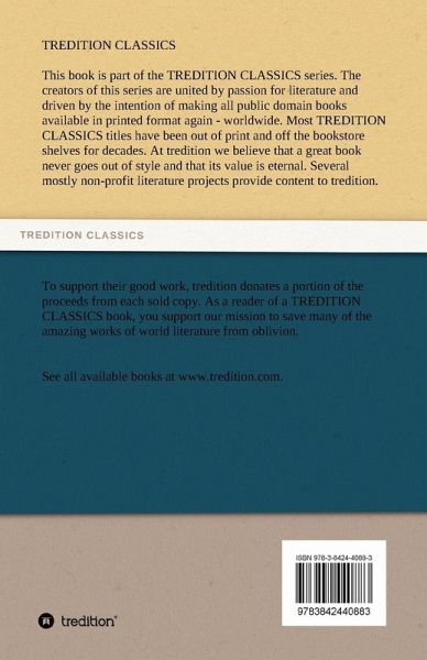 This book is part of the TREDITION CLASSICS series. The creators of this series are united by passion for literature and driven by the intention of making all public domain books available in printed format again - worldwide. At tredition we believe that a great book never goes out of style. Several mostly non-profit literature projects provide content to tredition. To support their good work, tredition donates a portion of the proceeds from each sold copy. As a reader of a TREDITION CLASSICS book, you support our mission to save many of the amazing works of world literature from oblivion.