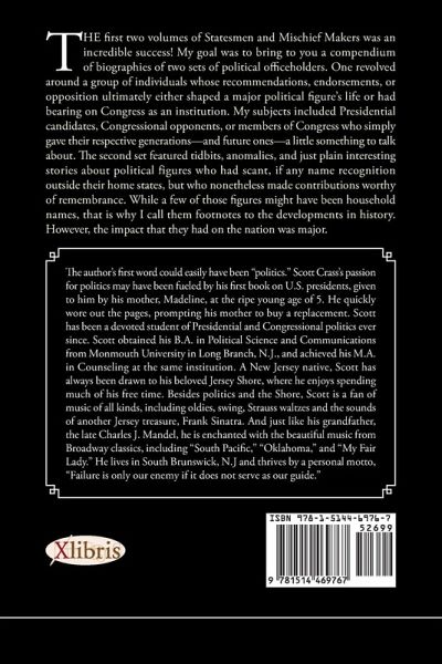 The author's first word could easily have been "politics." Scott Crass's passion for politics may have been fueled by his first book on U.S. presidents, given to him by his mother, Madeline, at the ripe young age of 5. He quickly wore out the pages, prompting his mother to buy a replacement. Scott has been a devoted student of Presidential and Congressional politics ever since. Scott obtained his B.A. in Political Science and Communications from Monmouth University in Long Branch, N.J., and achieved his M.A. in Counseling at the same institution. A New Jersey native, Scott has always been drawn to his beloved Jersey Shore, where he enjoys spending much of his free time. Besides politics and the Shore, Scott is a fan of music of all kinds, including oldies, swing, Strauss waltzes and the sounds of another Jersey treasure, Frank Sinatra. And just like his grandfather, the late Charles J. Mandel, he is enchanted with the beautiful music from Broadway classics, including "South Pacific," "Oklahoma," and "My Fair Lady." He lives in South Brunswick, N.J and thrives by a personal motto, "Failure is only our enemy if it does not serve as our guide."