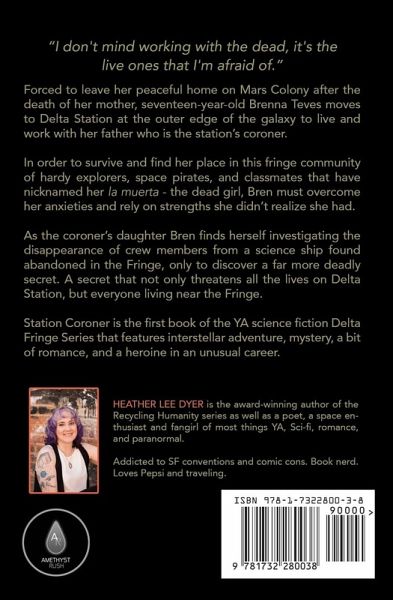 "I don't mind working with the dead, it's the live ones that I'm afraid of." Forced to leave her peaceful home on Mars Colony after the death of her mother, seventeen-year-old Brenna Teves moves to Delta Station at the outer edge of the galaxy to live and work with her father who is the station’s coroner. In order to survive and find her place in this fringe community of hardy explorers, space pirates, and classmates that have nicknamed her la muerta- the dead girl, Bren must overcome her anxieties and rely on strengths she didn’t realize she had. As the coroner’s daughter Bren finds herself investigating the disappearance of crew members from a science ship found abandoned in the Fringe, only to discover a far more deadly secret. A secret that not only threatens all the lives on Delta Station, but everyone living near the Fringe.