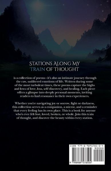Stations Along My Train of Thought is more than a collection of poems it's an intimate and transformative journey through the raw, unfiltered emotions of life. This poetry collection explores universal themes of love, heartbreak, identity, and resilience, offering readers a deeply personal yet relatable experience. Each poem serves as a reflection of the human condition, inviting readers to confront their own emotions and find solace in shared experiences. Written over the course of several years, this collection was born from moments of isolation, grief, and discovery. It became a lifeline for Parker J. Tillman, a way to navigate the turbulence of life and make sense of its challenges. Each "station" in the collection represents a distinct phase of growth, a pause for introspection on the journey toward self-discovery and healing. From the highs of love and connection to the depths of depression and loss, these poems embody the full spectrum of life's beauty and pain. Why read this book?Raw and relatable: The poetry speaks to universal struggles, from heartbreak to gratitude, offering comfort to anyone navigating their own emotional landscape. Deeply introspective: Each poem is a window into the author's soul, revealing his struggles, resilience, and ultimate triumphs. For every stage of life: Whether you are celebrating love, mourning loss, or searching for meaning, this collection provides moments of clarity and connection. Authentic storytelling: As a Black poet, Parker offers a unique perspective, challenging stereotypes and embracing the complexity of identity and self-expression. Stations Along My Train of Thought is a testament to the power of vulnerability. It reminds us that even in our darkest moments, there is strength in self-reflection and courage in emotional honesty. Whether you are seeking inspiration, comfort, or a voice that echoes your own, this collection invites you to embark on a journey of introspection, healing, and hope.