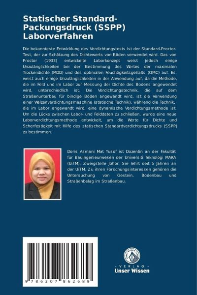 Die bekannteste Entwicklung des Verdichtungstests ist der Standard-Proctor-Test, der zur Schätzung des Dichtewerts von Böden verwendet wird. Das von Proctor (1933) entwickelte Laborkonzept weist jedoch einige Unzulänglichkeiten bei der Bestimmung des Wertes der maximalen Trockendichte (MDD) und des optimalen Feuchtigkeitsgehalts (OMC) auf. Es weist auch einige Unzulänglichkeiten in der Anwendung auf, da die Methode, die im Feld und im Labor zur Messung der Dichte des Bodens angewendet wird, unterschiedlich ist. Die Verdichtungstechnik, die auf dem Straßenunterbau für bindige Böden angewandt wird, ist die Verwendung einer Walzenverdichtungsmaschine (statische Technik), während die Technik, die im Labor angewandt wird, eine dynamische Verdichtungsmethode ist. Um die Lücke zwischen Labor- und Felddaten zu schließen, wurde eine neue Laborverdichtungsmethode entwickelt, um die Werte für Dichte und Scherfestigkeit mit Hilfe des statischen Standardverdichtungsdrucks (SSPP) zu bestimmen.