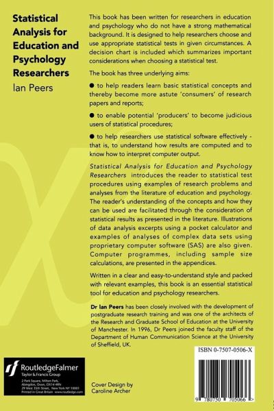 Basic statistical concepts such as probability, estimation and inference, and their role in research design and analysis are presented in this volume. The author demonstrates which statistical test to use in given circumstances and how to use it, drawing on data from psychology and education.; Written for those without a strong mathematical background, the book's examples can be worked using a pocket calculator. "Real life" data are analyzed using statistical software (SAS), output is interpreted, and a decision chart is presented which summarizes considerations when choosing a statistical test.