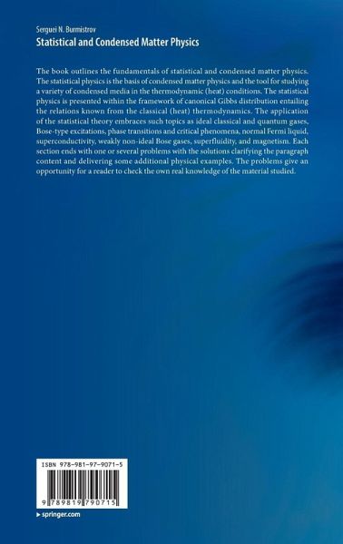 The book outlines the fundamentals of statistical and condensed matter physics. The statistical physics is the basis of condensed matter physics and the tool for studying a variety of condensed media in the thermodynamic (heat) conditions. The statistical physics is presented within the framework of canonical Gibbs distribution entailing the relations known from the classical (heat) thermodynamics. The application of the statistical theory embraces such topics as ideal classical and quantum gases, Bose-type excitations, phase transitions and critical phenomena, normal Fermi liquid, superconductivity, weakly non-ideal Bose gases, superfluidity, and magnetism. Each section ends with one or several problems with the solutions clarifying the paragraph content and delivering some additional physical examples. The problems give an opportunity for a reader to check the own real knowledge of the material studied.