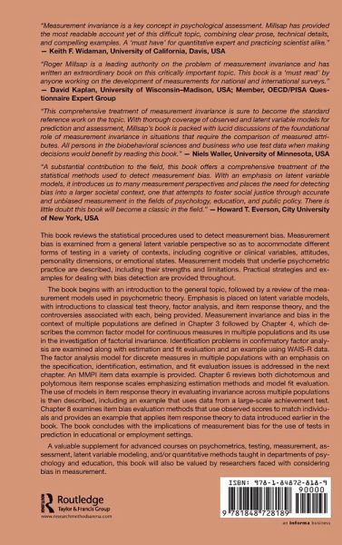 "Millsap provides extensive background, is technically rigorous, and illustrates the approaches with interesting psychological examples. The book is well written and deserves to become the classic reference in the field. ... [The] book provides a broad and very thorough exposition of the most important topics associated with the statistical study of measurement invariance. It is a timely book on an important topic. ... The book is a must read for psychometricians and for researchers who compare test scores across groups. ... [Readers] will be equipped with invaluable knowledge of the nature of group differences in psychological measurement." - Jelte Wicherts, Ph.D., University of Amsterdam, Netherlands, in PsycCRITIQUES