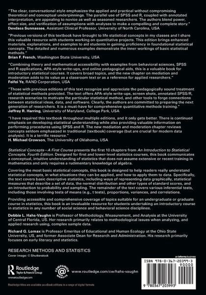 Statistical Concepts: A First Course presents the introductory chapters from An Introduction to Statistical Concepts, 4th Edition, designed for first and lower level statistics courses.