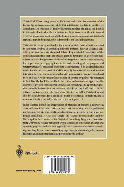 From the reviews: THE AMERICAN STATISTICIAN "Although there are other books that effectively tackle the individual aspects described above, this book seems to be the most ideally suited to teaching a well-rounded statistics course at the undergraduate of graduate level...[It] gives informative and self-contained discussions for the many aspects of consulting in balanced proportions that would make using the book for a textbook delightfully straightforward. The collection of case studies is diverse in disciplines considered and level of difficulty, and seems to focus on interesting problems that students will find highly motivating...a valuable resource for statistical consultants, both beginning and established...a prime candidate for use as a stand-alone textbook...since it contains a desirable balance of materials with statistical methodology, oral and written communication skills, and rich case studies...It will make a solid long-term reference for students. Also, for instructors of more traditional senior undergraduate and junior graduate courses, it provides useful case studies to illustrate standard methods in realistic settings that can easily be implemented."