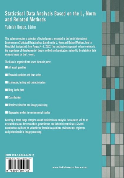 This volume contains a selection of invited papers, presented to the fourth In Statistical Analysis Based on the L1-Norm and Related ternational Conference on Methods, held in Neuchatel, Switzerland, from August 4-9, 2002. Organized jointly by the University of Illinois at Chicago (Gib Bassett), the Rutgers University (Regina Liu and Yehuda Vardi) and the University of Neuchatel (Yadolah Dodge), the conference brought together experts whose research deals with theory and ap plications involving the L1-Norm. The conference included invited and contributed talks as well as a tutorial on Quantile Regression. This volume includes 36 refereed invited papers under seven headings. Part one deals with Quantiles in all their forms and shapes. It includes papers on quantile functions in non-parametric multivariate analysis, and empirical applications of quantile regression. Much of the development in this direction follows from the fundamental paper by Koenker and Bassett in 1978. Financial and Time Series A nalysis follows the section on quantiles. Part three concerns Estimation, Testing and Characterization. Part four, Deep in the Data, deals with issues related to data depth. Part five addresses Classification questions. The problem of Density Estimation and Image Processing is discussed in Part six, and finally Part seven presents two environmental applications. The contributions represent clear evidence of important research involving theo retical issues and applications associated with the L1-Norm. It is my hope that the articles contained in this volume and its predecessors, published in 1987, 1992, and 1997, will stimulate interest among researchers.