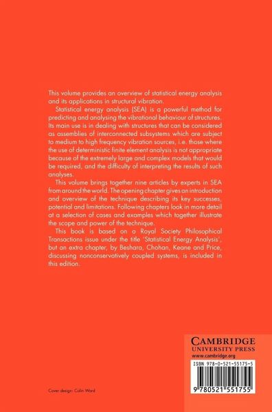 This 1997 volume provides an overview of statistical energy analysis and its applications in structural vibration. Statistical energy analysis is a powerful method for predicting and analysing the vibrational behaviour of structures. Its main use is for structures that can be considered as assemblies of interconnected subsystems which are subject to medium to high frequency vibration sources. This volume brings together nine articles by experts from around the world. The opening chapter gives an introduction and overview of the technique describing its key successes, potential and limitations. Following chapters look in more detail at a selection of cases and examples which together illustrate the scope and power of the technique. This book is based on a Royal Society Philosophical Transactions issue under the title 'Statistical Energy Analysis', but an extra chapter, by Chohan, Price, Keane and Beshara, discussing nonconservatively coupled systems is included in this edition.