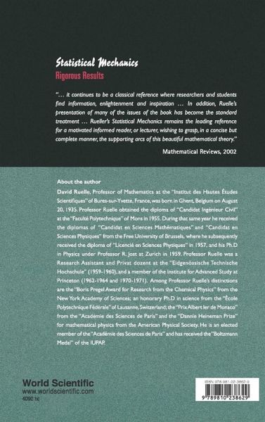 This classic book marks the beginning of an era of vigorous mathematical progress in equilibrium statistical mechanics. Its treatment of the infinite system limit has not been superseded, and the discussion of thermodynamic functions and states remains basic for more recent work. The conceptual foundation provided by the Rigorous Results remains invaluable for the study of the spectacular developments of statistical mechanics in the second half of the 20th century.
