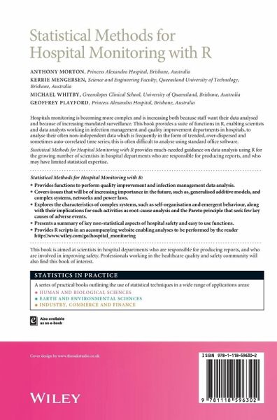 Hospitals monitoring is becoming more complex and is increasing both because staff want their data analysed and because of increasing mandated surveillance. This book provides a suite of functions in R, enabling scientists and data analysts working in infection management and quality improvement departments in hospitals, to analyse their often non-independent data which is frequently in the form of trended, over-dispersed and sometimes auto-correlated time series; this is often difficult to analyse using standard office software.
