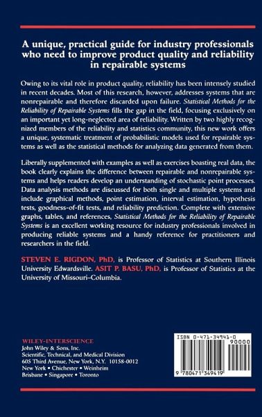 A unique, practical guide for industry professionals who need to improve product quality and reliability in repairable systems Owing to its vital role in product quality, reliability has been intensely studied in recent decades. Most of this research, however, addresses systems that are nonrepairable and therefore discarded upon failure. Statistical Methods for the Reliability of Repairable Systems fills the gap in the field, focusing exclusively on an important yet long-neglected area of reliability. Written by two highly recognized members of the reliability and statistics community, this new work offers a unique, systematic treatment of probabilistic models used for repairable systems as well as the statistical methods for analyzing data generated from them. Liberally supplemented with examples as well as exercises boasting real data, the book clearly explains the difference between repairable and nonrepairable systems and helps readers develop an understanding of stochastic point processes. Data analysis methods are discussed for both single and multiple systems and include graphical methods, point estimation, interval estimation, hypothesis tests, goodness-of-fit tests, and reliability prediction. Complete with extensive graphs, tables, and references, Statistical Methods for the Reliability of Repairable Systems is an excellent working resource for industry professionals involved in producing reliable systems and a handy reference for practitioners and researchers in the field.