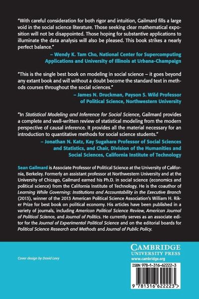 Written specifically for graduate students and practitioners beginning social science research, Statistical Modeling and Inference for Social Science covers the essential statistical tools, models and theories that make up the social scientist's toolkit. Assuming no prior knowledge of statistics, this textbook introduces students to probability theory, statistical inference and statistical modeling, and emphasizes the connection between statistical procedures and social science theory. Sean Gailmard develops core statistical theory as a set of tools to model and assess relationships between…mehr