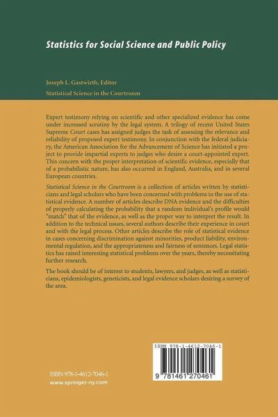 Expert testimony relying on scientific and other specialized evidence has come under increased scrutiny by the legal system. A trilogy of recent U.S. Supreme Court cases has assigned judges the task of assessing the relevance and reliability of proposed expert testimony. In conjunction with the Federal judiciary, the American Association for the Advancement of Science has initiated a project to provide judges indicating a need with their own expert. This concern with the proper interpretation of scientific evidence, especially that of a probabilistic nature, has also occurred in England, Australia and in several European countries. Statistical Science in the Courtroom is a collection of articles written by statisticians and legal scholars who have been concerned with problems arising in the use of statistical evidence. A number of articles describe DNA evidence and the difficulties of properly calculating the probability that a random individual's profile would "match" that of the evidence as well as the proper way to intrepret the result. In addition to the technical issues, several authors tell about their experiences in court. A few have become disenchanted with their involvement and describe the events that led them to devote less time to this application. Other articles describe the role of statistical evidence in cases concerning discrimination against minorities, product liability, environmental regulation, the appropriateness and fairness of sentences and how being involved in legal statistics has raised interesting statistical problems requiring further research.