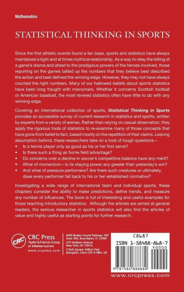 Featuring contributions from leading researchers in this area, "Statistical Thinking in Sports" covers statistical and econometric methodology along with a range of sporting applications. The book balances U.S.-based sports with European-based sports.