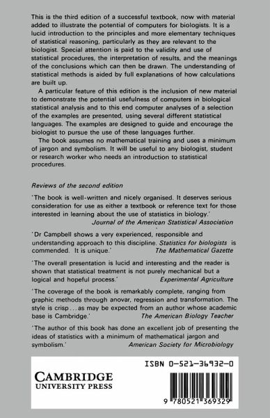 This is the third edition of a successful textbook, now with material added to illustrate the potential of computers for biologists. It is a lucid introduction to the principles and more elementary techniques of statistical reasoning, particularly as they are relevant to the biologist. Special attention is paid to the validity and use of statistical procedures, the interpretation of results, and the meanings of the conclusions which can then be drawn. The understanding of statistical methods is aided by full explanations of how calculations are built up. A particular feature of this edition is the inclusion, of new material to demonstrate the potential usefulness of computers in biological statistical analysis and to this end computer analyses of a selection of the examples are presented, using several different statistical languages. The examples are designed to guide and encourage the biologist to pursue the use of these languages further. The book assumes no mathematical training and uses a minimum of jargon and symbolism. It will be useful to any biologist, student or research worker who needs an introduction to statistical procedures.