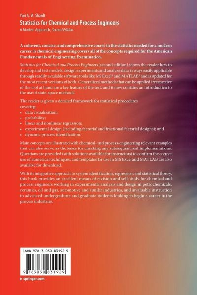 Statistics for Chemical and Process Engineers (second edition) shows the reader how to develop and test models, design experiments and analyze data in ways easily applicable through readily available software tools like MS Excel® and MATLAB® and is updated for the most recent versions of both. Generalized methods that can be applied irrespective of the tool at hand are a key feature of the text, and it now contains an introduction to the use of state-space methods.