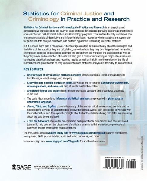 Statistics for Criminal Justice and Criminology in Practice and Research-by Jack Fitzgerald and Jerry Fitzgerald-is an engaging and comprehensive introduction to the study of basic statistics for students pursuing careers as practitioners or researchers in both Criminal Justice and Criminology programs. This student-friendly text shows how to calculate a variety of descriptive and inferential statistics, recognize which statistics are appropriate for particular data analysis situations, and perform hypothesis tests using inferential statistics. But it is much more than a "cook book." It encourages readers to think critically about the strengths and limitations of the statistics they are calculating, as well as how they may be misapplied and misleading. Examples of statistics and statistical analyses are drawn from the worlds of the practitioner as well as the policymaker and researcher. Students will also gain a clear understanding of major ethical issues in conducting statistical analyses and reporting results, as well as insight into the realities of the life of researchers and practitioners as they use statistics and statistical analyses in their day-to-day activities.