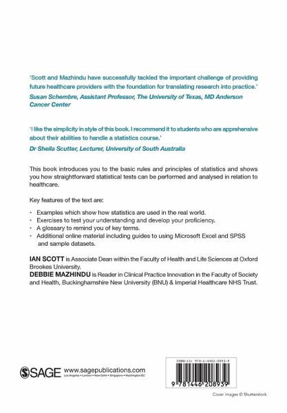 This book introduces you to the basic rules and principles of statistics and shows you how straightforward statistical tests can be performed and analysed in relation to healthcare. Key features of the text are: -Examples which show how statistics are used in the real world -Exercises to test your understanding and develop your proficiency -A glossary to remind you of key terms. -Additional online material including guides to using Microsoft Excel and SPSS and sample datasets.