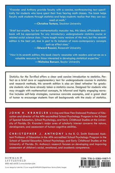 Fear of heights, fear of public speaking, fear of flying—virtually everyone is afraid of something. Statistics for the Terrified (7th ed.) is a user-friendly introduction to elementary statistics, intended primarily for the reluctant, math-anxious, math-avoidant person.