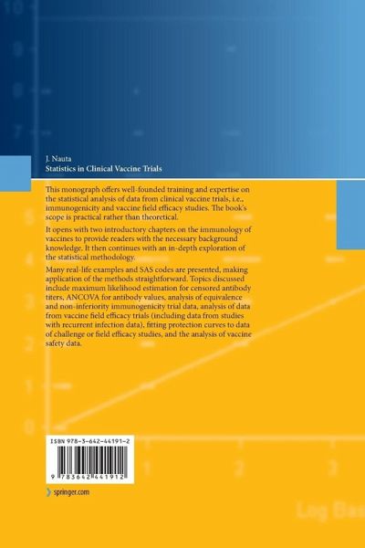 This monograph offers well-founded training and expertise on the statistical analysis of data from clinical vaccine trials, i.e., immunogenicity and vaccine field efficacy studies. The book's scope is practical rather than theoretical. It opens with two introductory chapters on the immunology of vaccines to provide readers with the necessary background knowledge. It then continues with an in-depth exploration of the statistical methodology. Many real-life examples and SAS codes are presented, making application of the methods straightforward. Topics discussed include maximum likelihood estimation for censored antibody titers, ANCOVA for antibody values, analysis of equivalence and non-inferiority immunogenicity trial data, analysis of data from vaccine field efficacy trials (including data from studies with recurrent infection data), fitting protection curves to data of challenge or field efficacy studies, and the analysis of vaccine safety data.