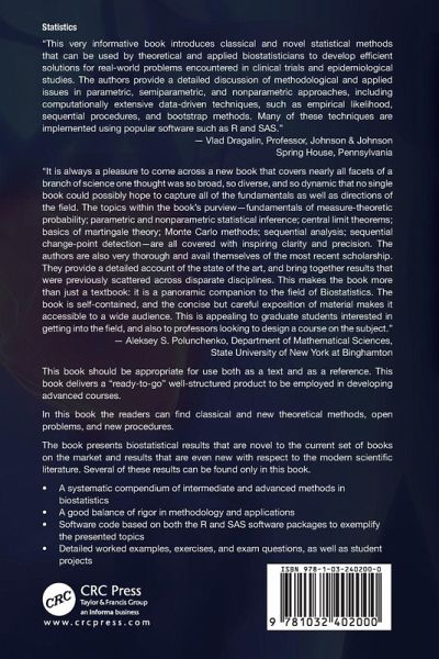 "It is always a pleasure to come across a new book that covers nearly all facets of a branch of science one thought was so broad, so diverse, and so dynamic that no single book could possibly hope to capture all of the fundamentals as well as directions of the field. The topics within the book's purview-fundamentals of measure-theoretic probability; parametric and non-parametric statistical inference; central limit theorems; basics of martingale theory; Monte Carlo methods; sequential analysis; sequential change-point detection-are all covered with inspiring clarity and precision. The authors are also very thorough and avail themselves of the most recent scholarship. They provide a detailed account of the state of the art, and bring together results that were previously scattered across disparate disciplines. This makes the book more than just a textbook: it is a panoramic companion to the field of Biostatistics. The book is self-contained, and the concise but careful exposition of material makes it accessible to a wide audience. This is appealing to graduate students interested in getting into the field, and also to professors looking to design a course on the subject." - Aleksey S. Polunchenko, Department of Mathematical Sciences, State University of New York at Binghamton