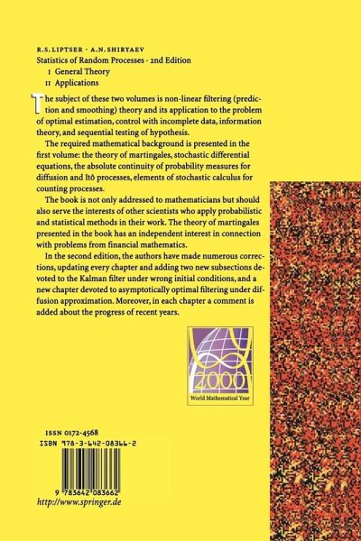 From the reviews: JOURNAL OF THE AMERICAN STOCHASTIC ASSOCIATION "The material is accessible to researchers and advanced graduate students. These two classic volumes are very important resources for both probabilists and statisticians." SIAM REVIEW "Written by two renowned experts in the field, the books under review contain a thorough and insightful treatment of the fundamental underpinnings of various aspects of stochastic processes as well as a wide range of applications. Providing clear exposition, deep mathematical results, and superb technical representation, they are masterpieces of the subject of stochastic analysis and nonlinear filtering¿What is special about these books is their broad coverage and in-depth study of optimal filtering problems¿The books can be used by researchers in different areas who need to use stochastic calculus and who treat state estimation, detection, and stochastic control problems under incomplete information and partial observations¿These two books are a comprehensive treatise on stochastic calculus, random processes, and filtering theory, and provide an excellent and illuminating introduction to these fields with a wide range of theoretical and practical issues. With the new additions and modifications of the first edition, they are to be welcomed and benefit not only the systems theory and control community but also mathematicians working on stochastic processes; engineers in control, communication, and signal processing; researchers in financial engineering; and scientists in many other related fields. It is conceivable that these books will have a significant impact on the aforementioned fields and will become classics." SIAM REVIEW