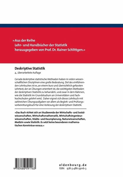 Gerade deskriptive statistische Methoden haben in vielen wissenschaftlichen Disziplinen eine große Bedeutung. Ziel des einführenden Lehrbuches ist es, an einem kurz und übersichtlich gefassten Lehrtext, der an Übungen orientiert ist, die wichtigsten Methoden der deskriptiven Statistik zu behandeln, und zwar in dem Rahmen, wie die Statistik im Grundstudium an Universitäten und Fachhochschulen gelehrt wird. Daher eignet sich dieses Lehrbuch mit zahlreichen Übungsaufgaben vor allem als Begleit- und Prüfungsvorbereitungsbuch für eine Vorlesung der deskriptiven Statistik. Das Buch richtet sich an Studierende der Wirtschafts- und Sozialwissenschaften, Wirtschaftsmathematik, Wirtschaftsingenieurwissenschaften, Städte- und Raumplanung, Naturwissenschaften, Medizin sowie Statistik. Es setzt keine besonderen mathematischen Kenntnisse voraus.