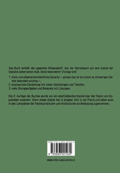 Statistik- dieses Wort weckt unangenehme Erinnerungen an Tabellen, unüber schaubares Zahlenmaterial und lästige Fragebogen. Auch die Erinnerung an die Geschichte von der Steigerungsform der Lüge, nach der es drei Arten der Lüge gibt: einfache Lüge, gemeine Lüge, Statistik, wird geweckt. Und dennoch kann man sich der Qualität der Argumentation nicht entziehen, wenn Zahlen, mit dem Anschein des unumstößlich Faktischen verbunden, in die Diskussion geworfen werden. Allgemein wird anerkannt, daß exakte Kenntnis des Wirtschafts- und Gesellschaftslebens weitgehend auf statistischen Erhebun gen beruht, die zur beschreibenden Bestandsaufnahme, zur Klärung von Kau salbeziehungen und als Entscheidungshilfe dienen. Die zunehmende Bedeutung der Statistik im weitesten Sinne hat zur Folge, daß grundlegende Kenntnisse der statistischen Methodenlehre notwendig sind, um gesellschaftliche wie betriebliche Zusammenhänge erkennen und darstellen zu können. Obwohl die betriebliche Statistik im allgemeinen nach Sachgebieten im Betrieb unterteilt ist, sei in diesem Buch die statistische Methodenlehre stärker hervorgehoben und gezeigt, wie sie im Betrieb eingesetzt werden kann. Speziell die Beispiele und Übungsaufgaben mit jeweils ausführlichem Lösungsgang und eingefügten Kontroll- und Verständnisfragen sollen den betrieblichen Bezug verdeutlichen. Wo es notwendig erscheint und sich betriebsinterne Daten mit betriebsexternen Daten verbinden, wird die Beziehung zur amtlichen Statistik aufgezeigt. Bei der zweiten Auflage wurde eine kurze Einführung in das Testen von Hypo thesen angefügt, da dieses Gebiet in Studium und Praxis an Bedeutung gewinnt.